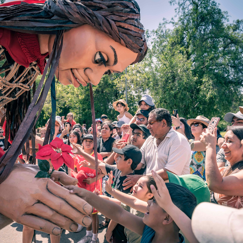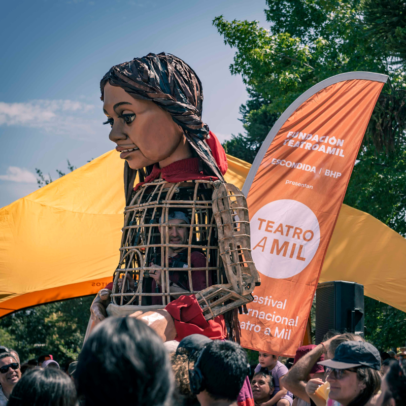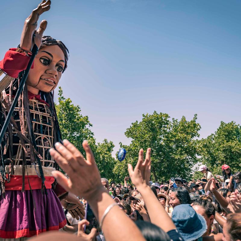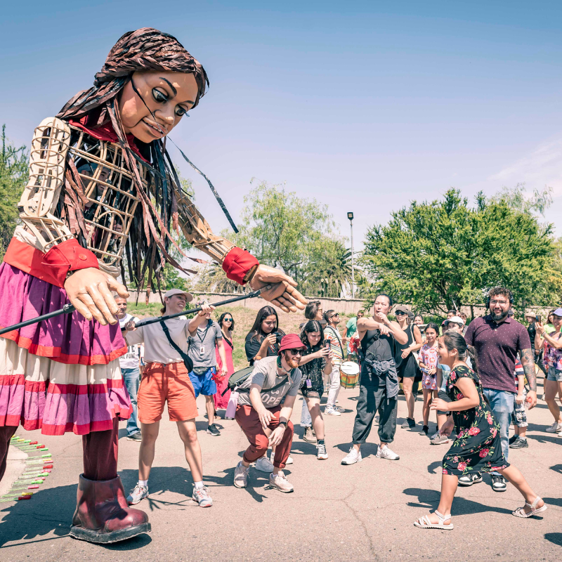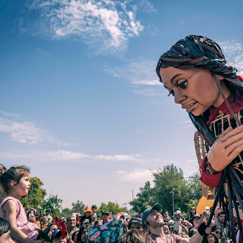 Más de 5 mil granjinos y granjinas llegaron esta mañana hasta el sector de las calles Estadio con Quebec, para recibir una visita ilustre: “Amal”, una marioneta de 3,5 metros de altura -cuyo nombre en español es Esperanza- y que representa a una niña siria refugiada de 10 años, quien entregó toda su magia y encanto en el inicio oficial de las actividades culturales de verano organizados por la Corporación de Cultura de la Municipalidad de la Granja, en alianza con la Fundación Teatro a Mil.