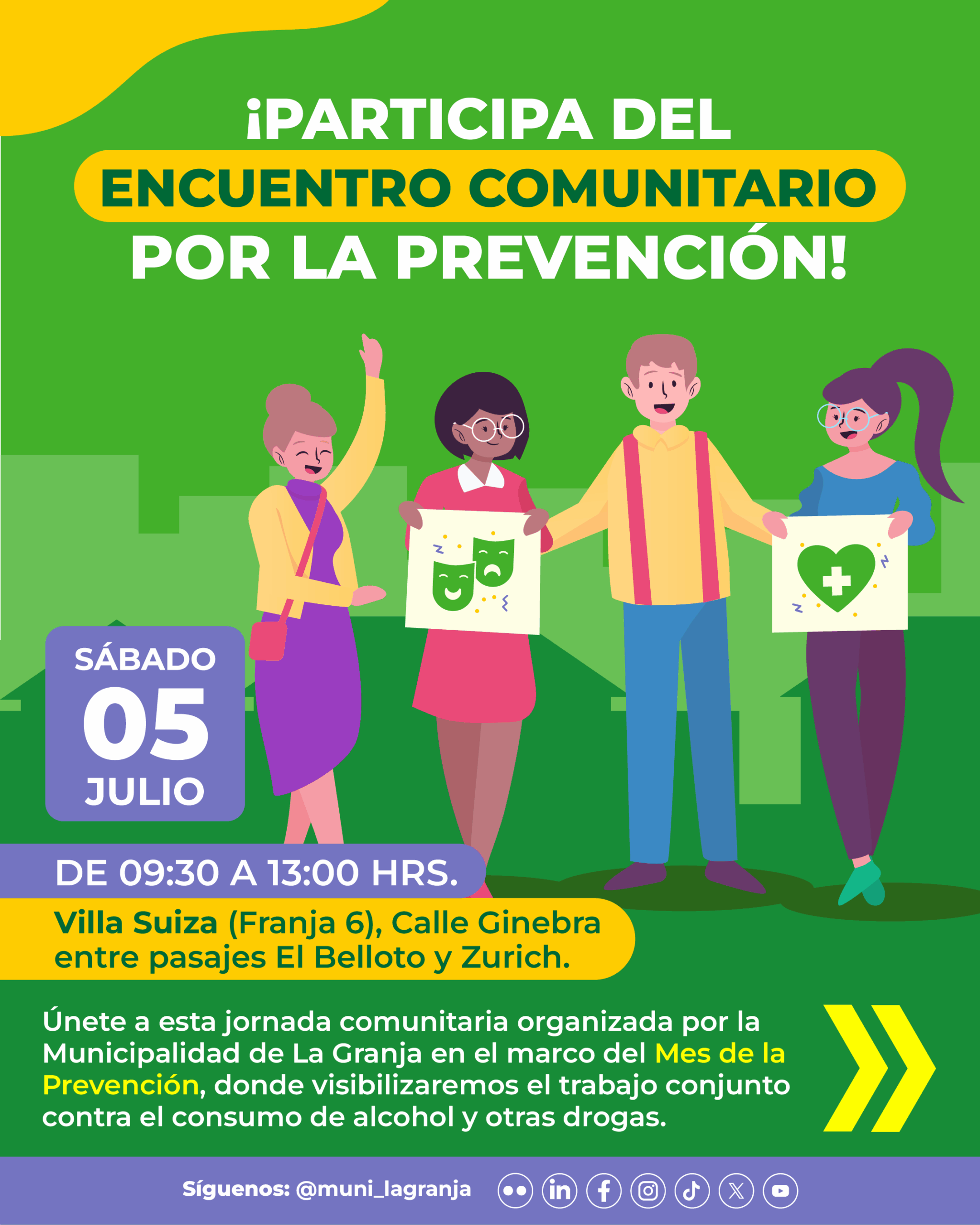 ¡Te esperamos! Súmate a este primer fin de semana de julio para que juntos podamos construir una comuna consciente, participativa y libre de drogas.