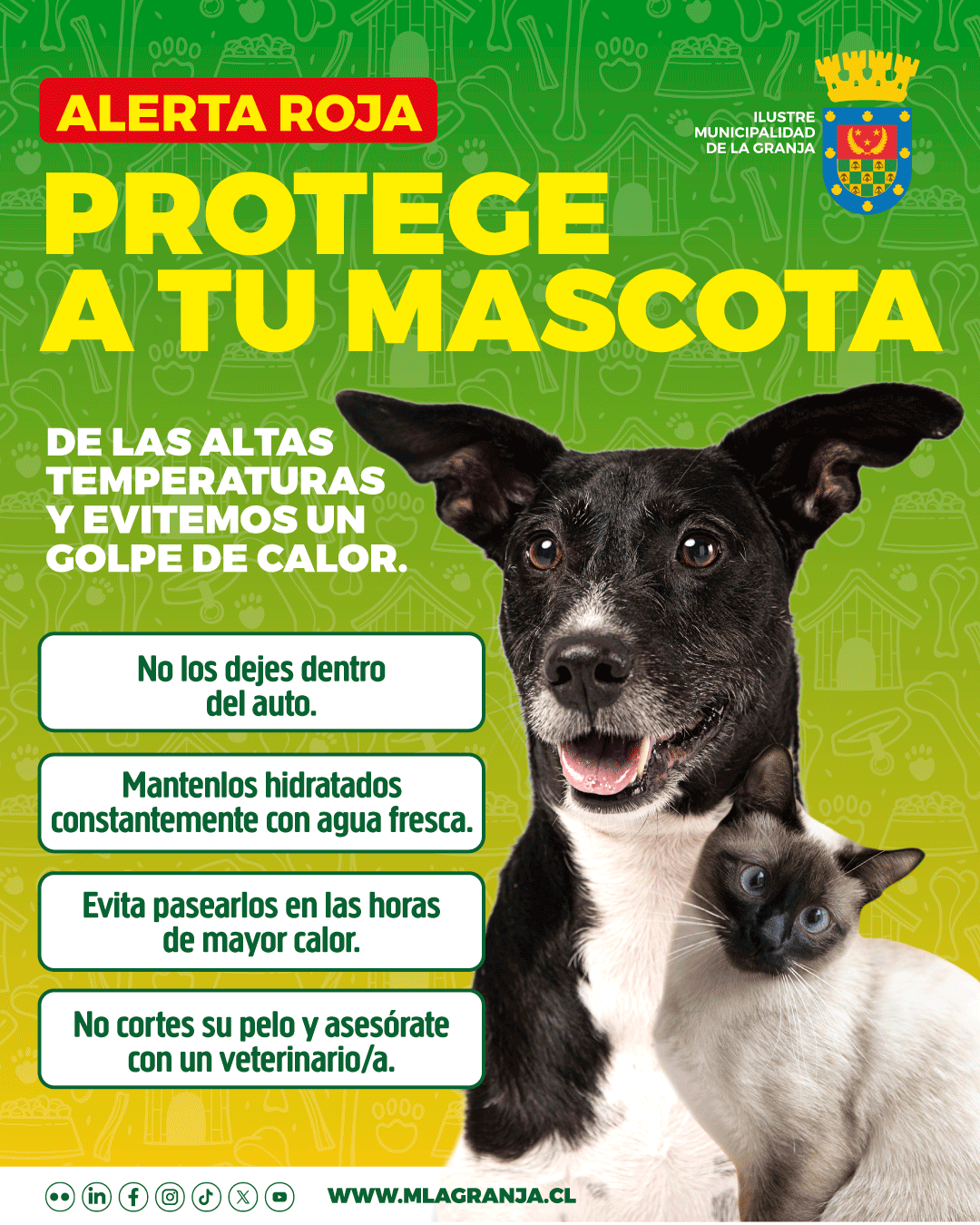 En el caso de las mascotas, se recomienda asegurar acceso permanente a agua, habilitar espacios frescos dentro del hogar, mojar suavemente su cuerpo si es necesario y estar atentos a cualquier cambio en su comportamiento.